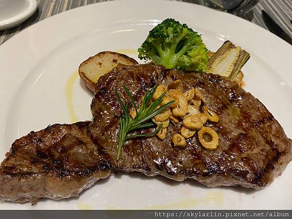 牛排一定要搭配炸蒜片呀! 超香的。而且口感脆脆的蒜片,有種餅乾感。