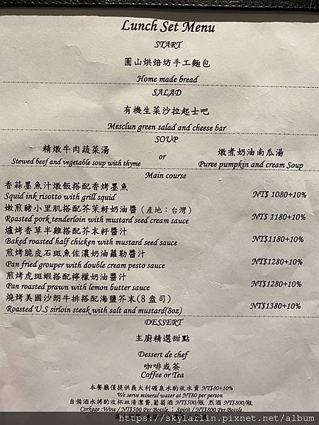提供 義大利品牌 S.PELLEGRINO聖沛黎洛 氣泡礦泉水 ,每位酌收水資NT$80+10%。收費相對優惠一些。