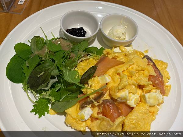 另外附有英式馬芬,搭配自家製作果醬及奶油。