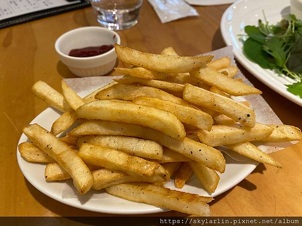 沙拉採用???葉,淋上自製特調的油醋醬,爽口有味。很好吃。