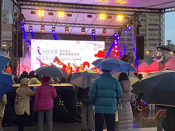 台北101水舞廣場,12/25有日台交流協會舉辦之「日台之星聖誕音樂會市集」,讓久未出國的大家重溫日本文化與風情。絕對是日本控不能錯過的一站。